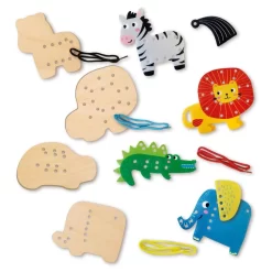- 5 dieren: tijger, krokodil, zebra, olifant en giraffe