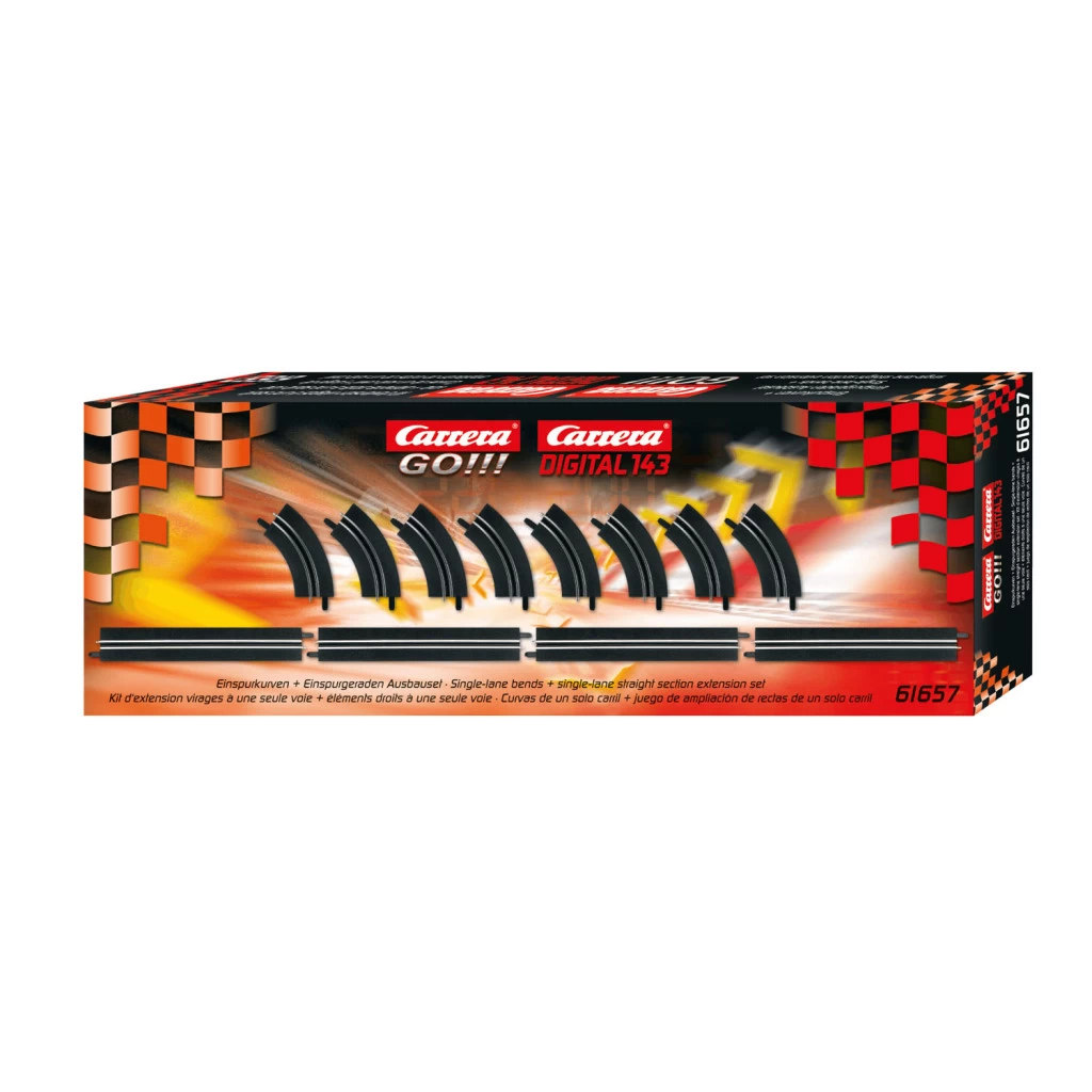 Carrera GO!!! uitbreidingspakketvoor Carrera racebanen. Het pakket bevat 8 bochten en 4 rechte stukken, allemaal enkelbaans. Geschikt voor kinderen vanaf 6 jaar.