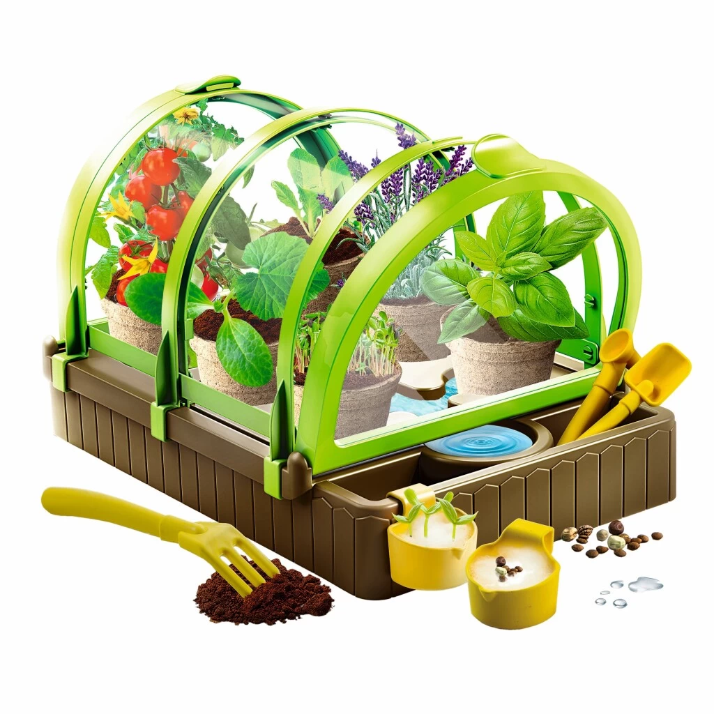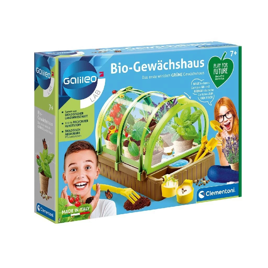 Een superleukeClementoni Galileo Lab kweekas met een modern design, waarmee kinderen de geheimen van de biologische teelt kunnen ontdekken! Volledig gemaakt van gerecycled plastic, met biologisch afbreekbare potten en biologische zaden en een nieuw eenvoudig en effectief openingssysteem om de juiste omgeving voor zaailingen te garanderen. Met een complete set gereedschappen en speciale hangende potten voor ontkieming, die het kind zullen helpen planten te planten en te laten groeien! Het wetenschappelijke handboek helpt het kind de geheimen van de biologische landbouw te ontdekken, zodat ze een botanischw superexpert kunnen worden! Deze wetenschappelijke set uit de Play for Future lijn is gemaakt met 100 procent gerecyclede materialen. Geschikt voor kinderen vanaf 7 jaar.
