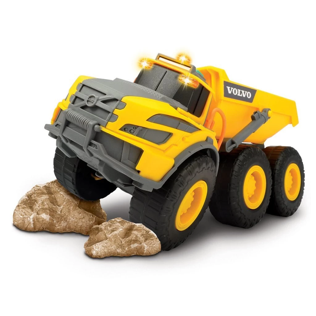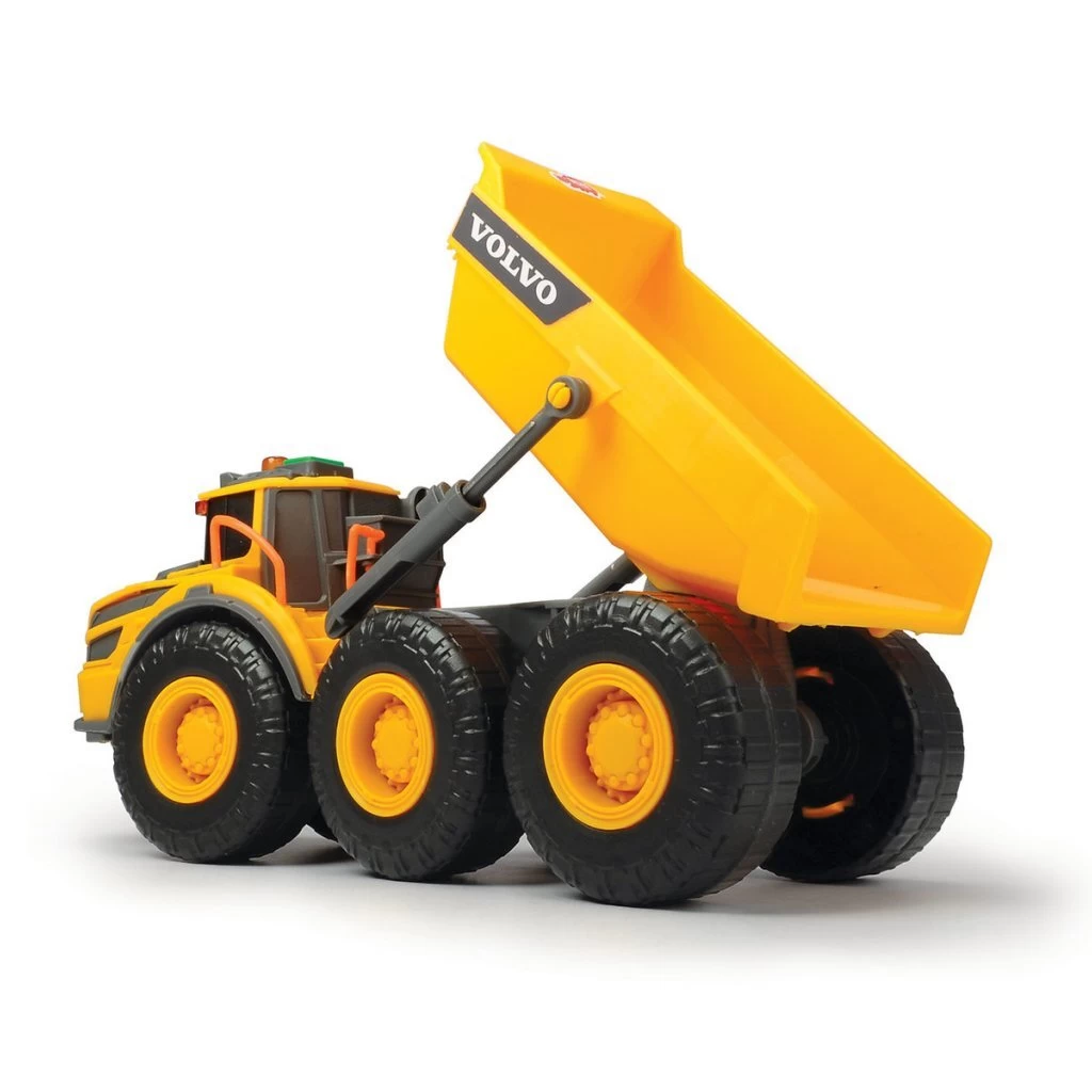StoereVolvo dumptruck vanDickie Toys met licht- en geluidseffecten. Geschikt voor kinderen vanaf 3 jaar.