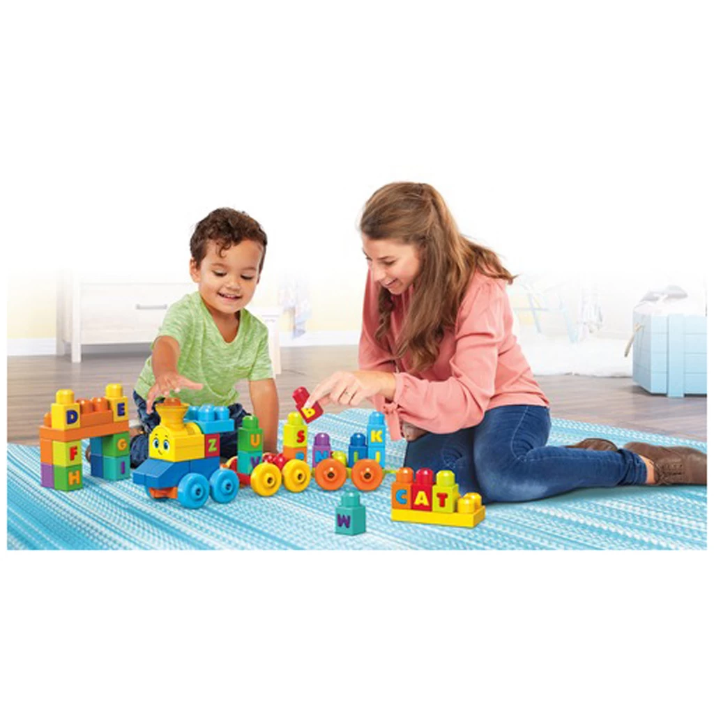 De alfabettrein is er! Allemaal instappen voor echte geluidjes en muziek!Jouw kind leert in een sneltreinvaart het ABC door deze muzikale trein te bouwen met de letter A tot Z! Maak de drie wielsets met echt draaiende wielen aan elkaar vast. Stapel daarna de letterblokken op elkaar en vorm het alfabet of een heel woord. Duw op de schoorsteen van de trein en luister naar treingeluidjes en muziek. Zo voeg je een snufje magie toe aan jouw alfabetavontuur! 50-delig. Geschikt voor kinderen van 1 tot 5 jaar.