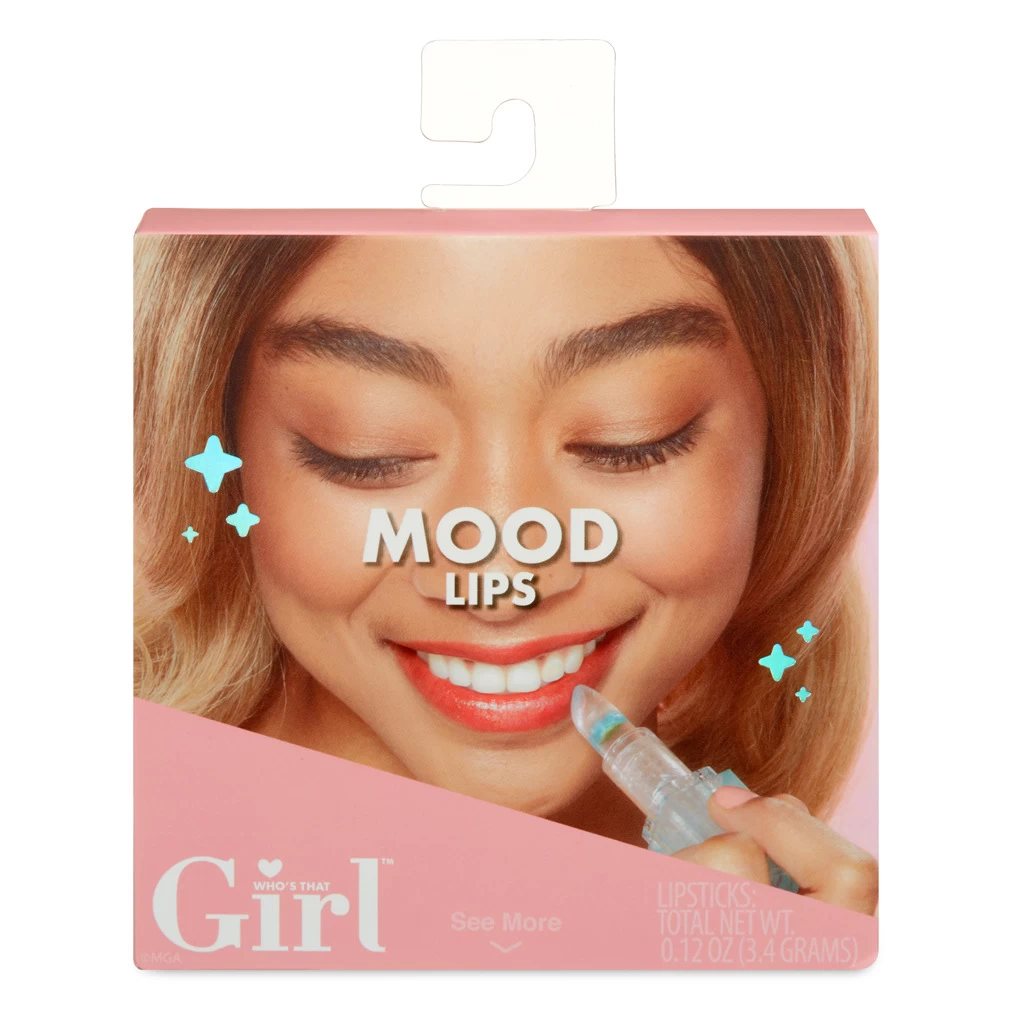 Whos that Girl Mood Lips is een lippenstift met een verrassing binnenin. Als je de lippenstift aanbrengt, verandert de lippenstift van kleur om bij je stemming te passen! Gebruik de lippenstift om een persoonlijk tintje toe te voegen aan je look elke dag, want Whos that Girl Magische lippen zien er bij iedereen weer anders uit. Kijk hoe de lippenstift anders reageert bij jou en je vriendinnen!