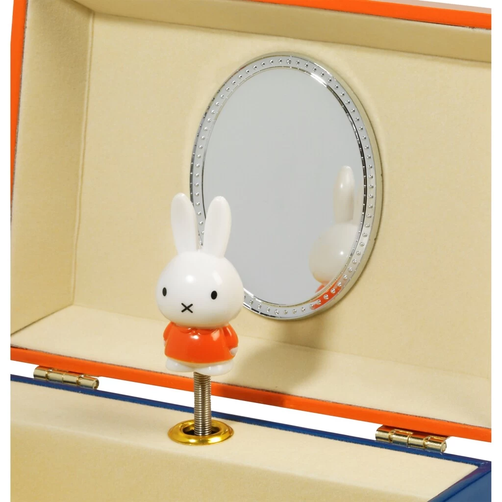 Een muzikaal doosje om je mooiste schatten in op te bergen. Als je het doosje opent, speelt het muziekje en danst nijntje voor de spiegel. Het doosje is uitgevoerd in de herkenbare kleurstijl van Dick Bruna, met typisch Hollandse afbeeldingen zoals molens, fietsen, tulpen en natuurlijk nijntje. Geen mooiere plek voor het bewaren van je sieraden, stenencollectie, verenverzameling en knikkerveroveringen!