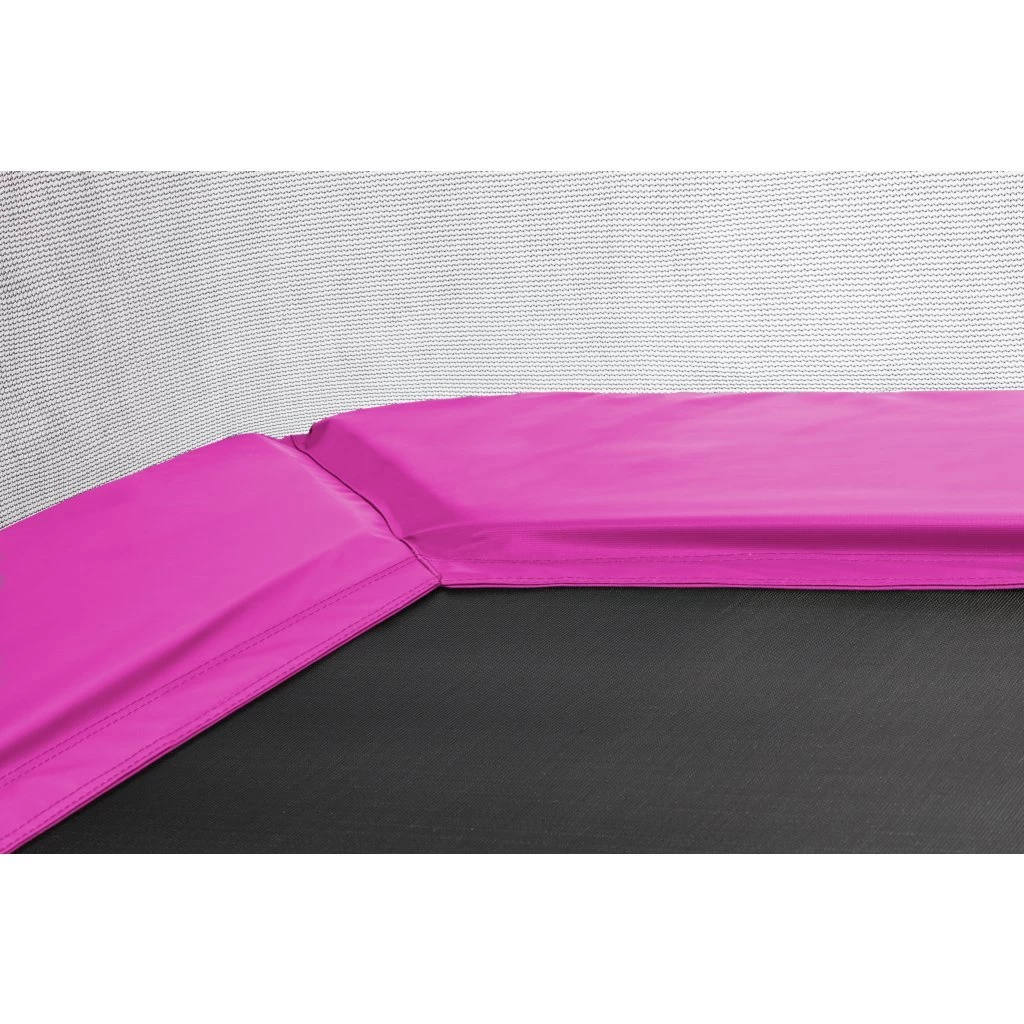 Deze trampoline biedt een aantal specifieke kenmerken die een professioneel imago geeft. Het heeft de juiste balans tussen veiligheid, kwaliteit, duurzaamheid en de beste prijs. De rechthoekige trampoline is voorzien van een extra dikke en gelijkmatige rand gemaakt van hoogwaardig materiaal. De gegalvaniseerde veren zijn uitgevoerd als gold colored springs. Dit geeft het geheel een nieuwe dimensie aan springen! De duurzame stalen frames zijn bestand tegen corrosie door het proces van galvaniseren.