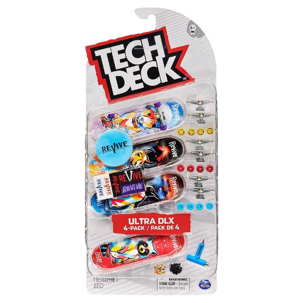 Tech Deck levert het echte werk met authentieke fingerboards van echte skatebedrijven! Elk model is voorzien van originele graphics gemaakt door de grootste skatebedrijven ter wereld, waaronder Blind, Baker, Flip, Finesse, Santa Cruz, Plan B, Sk8mafia en Toy Machine. Dit 4-pakket bevat 4 boards die je helemaal op jouw manier kunt bouwen. Maak je favoriete moves en breid je arsenaal aan trucs uit door online tips te kijken op techdeck.com. Bouw je collectie en check deze online met de interactieve verzamelaarstool van Tech Deck. Er zijn talloze Decks om te verzamelen! Als je originele skategraphics van echte skatebedrijven wilt, moet je bij Tech Deck zijn: verzamel ze allemaal!