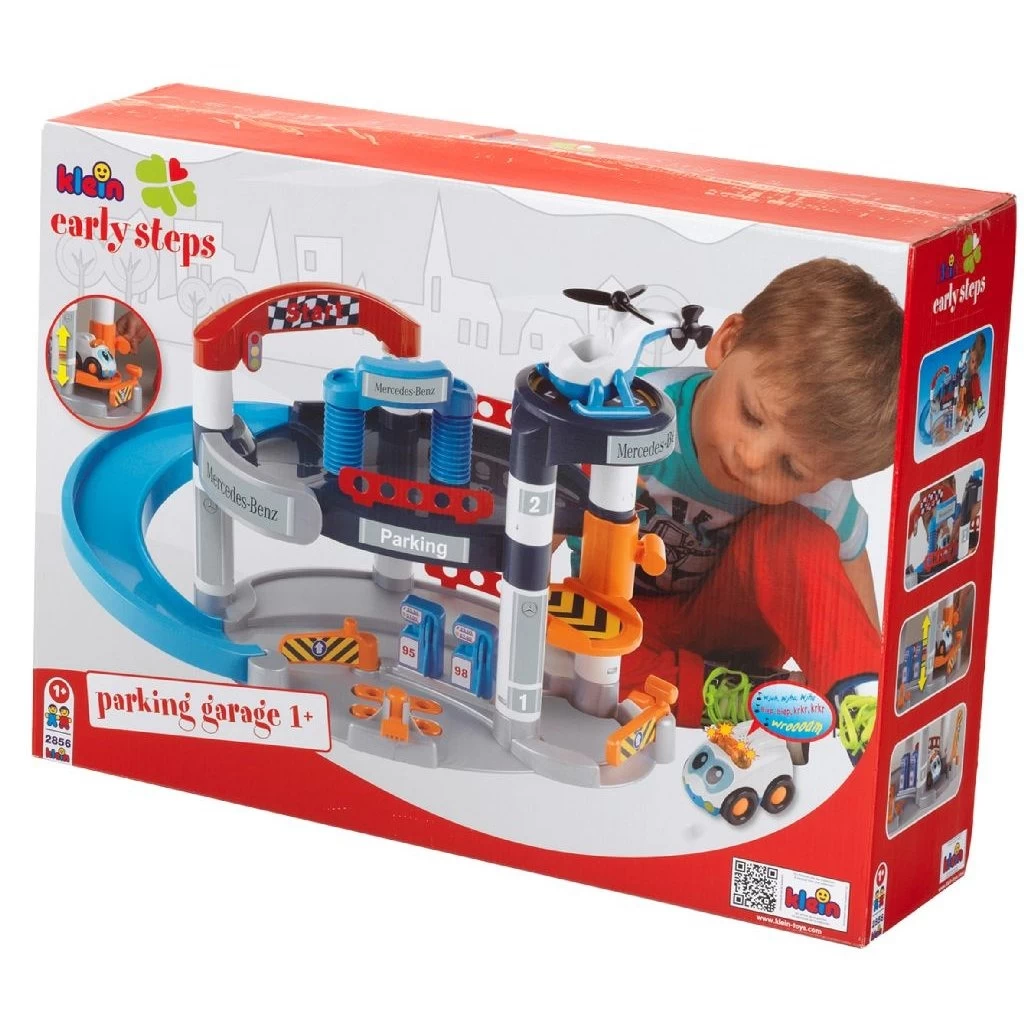 Theo Klein Mercedes-Benz garage met auto met licht- en geluidseffecten en helikopter. Geschikt voor kinderen vanaf 1 jaar.